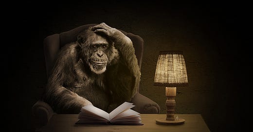 Chimpanzees are one of the most brutal animal species. They murder and rape. Groups of chimps invade the territories of neighboring clans, attacking and killing smaller groups or individuals. A chimp clan tries to weaken the neighboring clans. It is a case of “kill or be killed.”